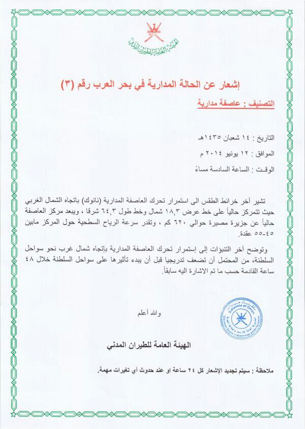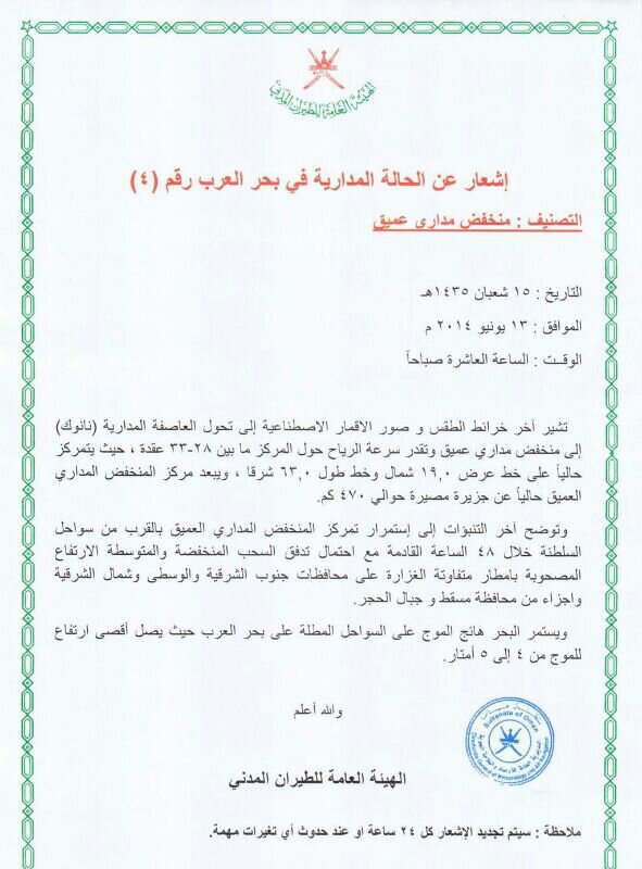 رد: متابعة أخر تطورات العاصفة المدارية نانوك nanauk ببحر العرب 2014م
