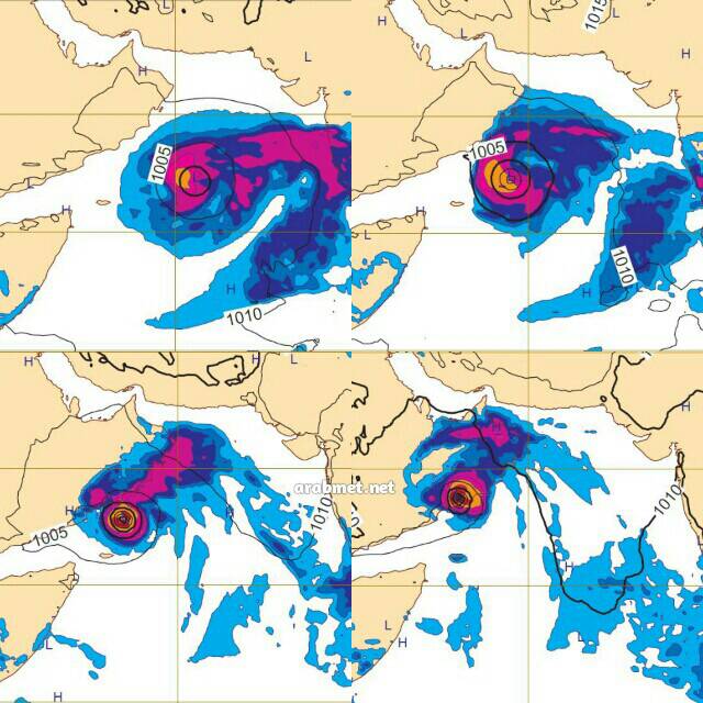 اذن نيلوفر 80% الى سواحل الوسطى وبعدها نحو سواحل الشرقية ومصيرة بشكل مباشر من بعد الإثنين , وعندها ستكون سواحل ظفار تحت ظل العاصفة وقد تتاثر بسحب متوسطة تنتج امطار خفيفة ببعض سواحل ظفار , وبعد ذلك من بعد الثلاثاء واواخر الاسبوع الحالي يمتد حوض بارد شتوي نحو شمال عمان يتفاعل مع العاصفة المتواجدة قبالة ساحل الشرقية منتجة تاثيرا قويا غير مباشرا بامطار قوية بمسقط والباطنة وبجبال الحجر نتيجة سحب طبقية على حسب وصف الزعيم زاهر الشقصي ,,, وبعد ذلك تنحرف الحالة نحو الشمال الشرقي مبتعدة عن عمان تبعا لحركة التيار النفاث الغربي متجهة الى الثقب الاسود ( جويجرات ) وتبدا بالضعف التدريجي ...