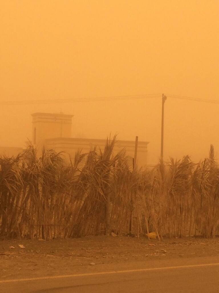 واضح لا يزال عامل الصد للرياح الجنوبية الغربية على جنوب شرق السلطنة هي اللي عاملة بلوك بعدم تحرك الغبار إلى محافظات السلطنة الأخرى مثل الشرقية والوسطى ومسقط والداخلية وعلى حسب التنبؤات اليوم الصباح من المتوقع مع ساعات القادمة عندما تنكسر الرياح الجنوبية الغربية وتبدأ الشمالية الغربية بالتقدم علينا راح يجتاح المحافظات المذكورة سابقا التغير بالرياح راح يبدأ من بعد الساعة الخامسة مساءا. نتابع معكم