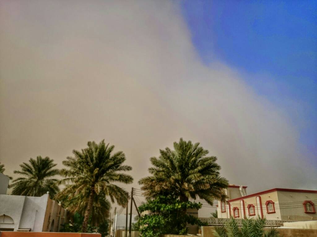 *الرؤية الأفقية تتدنى إلى ١٠٠٠م في مسقط واحتمال تزايد كثافة الغبار خلال الساعات القادمة، للإنتباه!