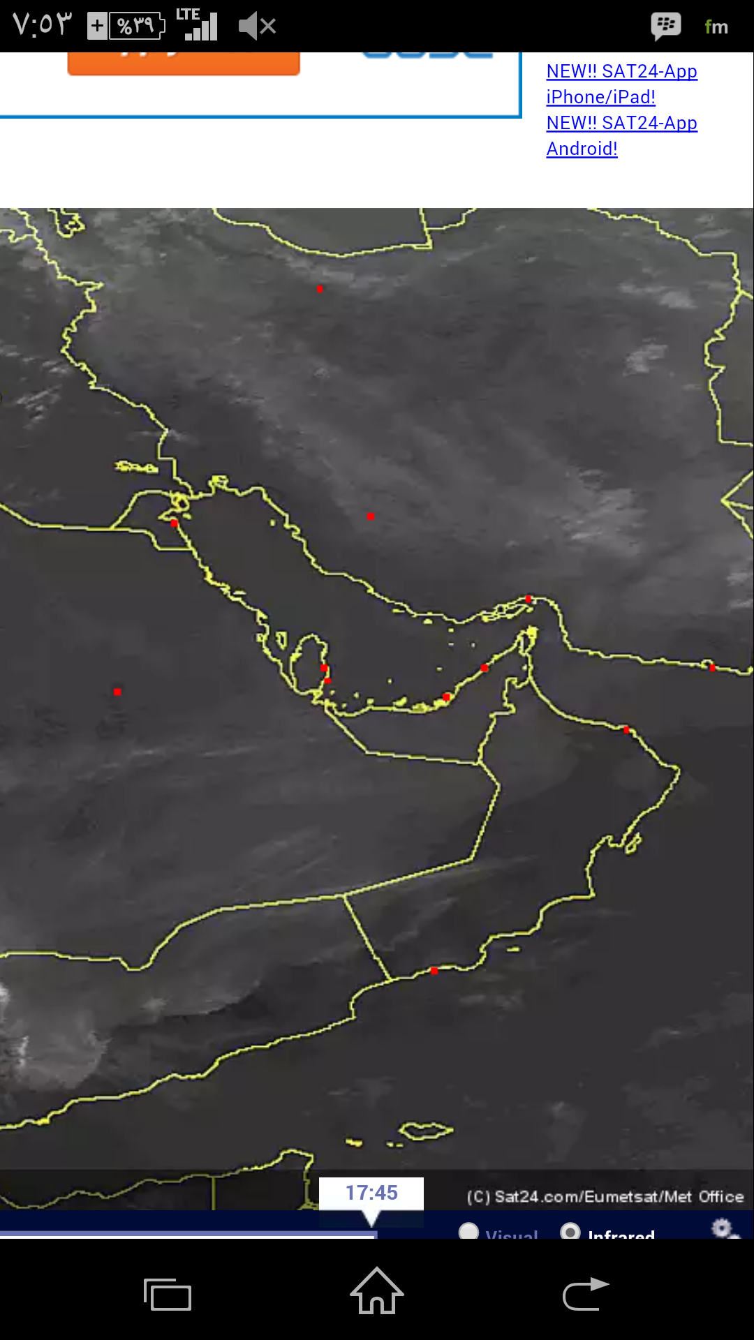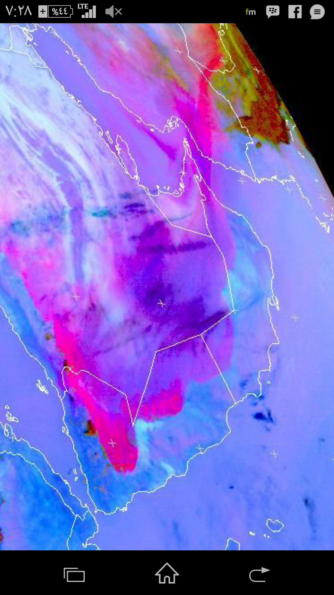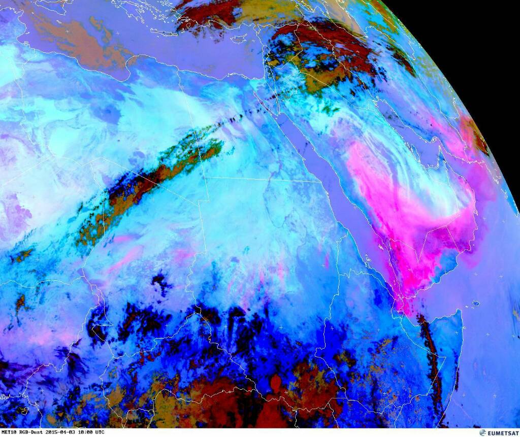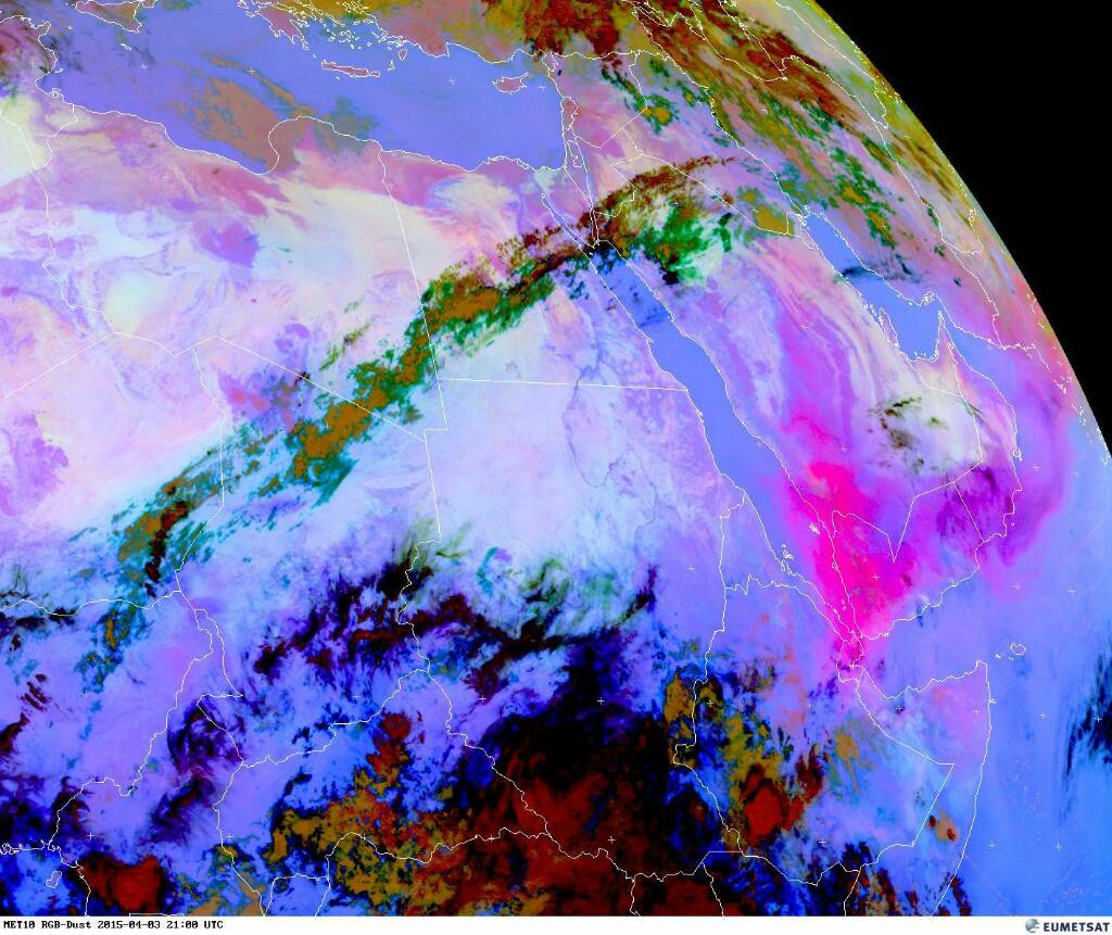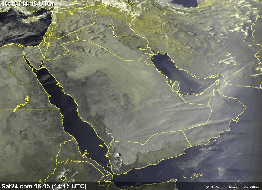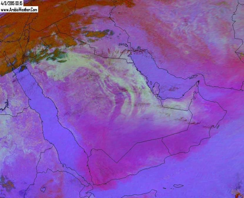 انحسار تدريجي للغبار من أجواء #الإمارات و #عمان لاحقا واستمرار تواجدها ب #اليمن وجنوب #السعودية