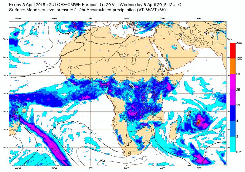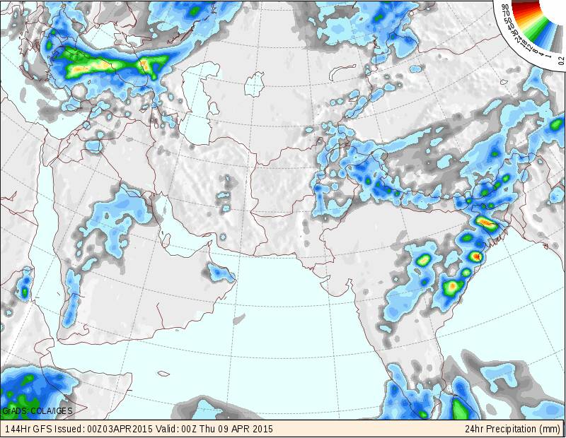 الحمدلله تحسن توقعات الامطار على السلطنة من خلال توقعات الامطار التراكمية الى 10 ابريل