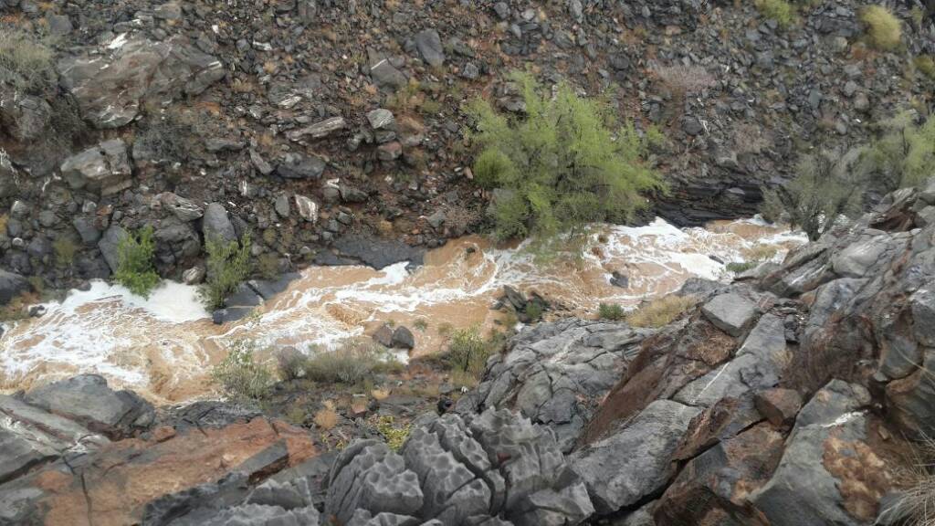 هطول أمطار غزيرة شمال ابراء مع جريان الشعاب