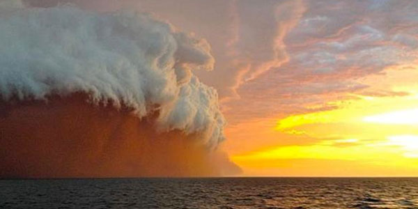 اجتاحت عاصفة رملية المحيط الهندي غربي أستراليا مشكّلة جدارا من الغبار وسط المياه مذهلا ومعترضا السفن التي كانت قرب موقع العاصفة.