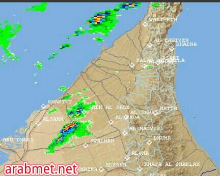 خلايا غزيرة قد تكون مصحوبة بحبات البرد حسب رادار أبوظبي #الإمارات