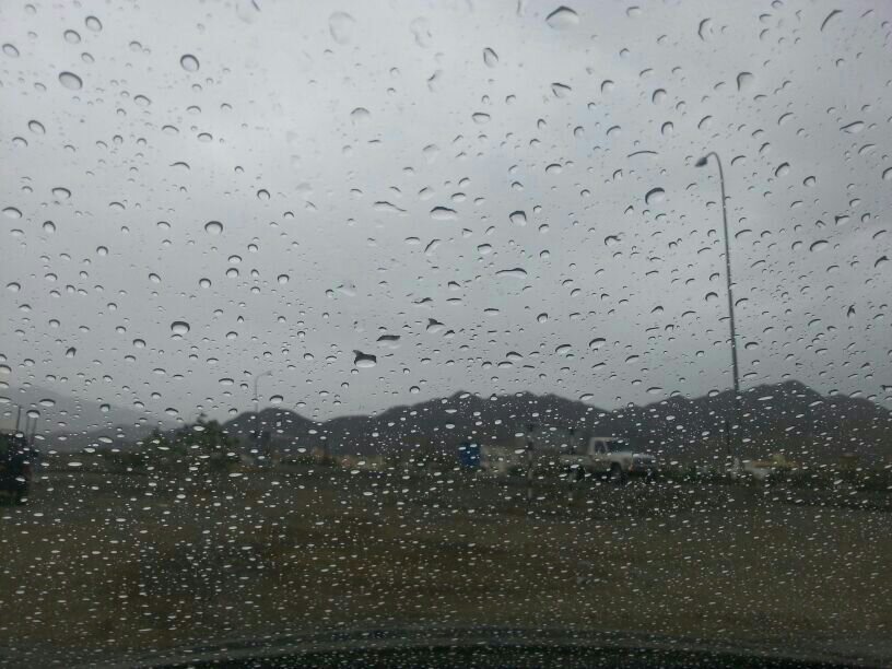 قطرات المطر الخفيفة تتساقط على عبري بين حين وآخر والحمدلله