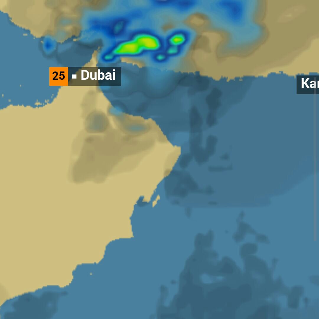 حاليا .. بدايه ظهور حزام ممطر بوسط شمال الامارات ... وبدايه التكاثفات بولايات شمال الباطنه ..