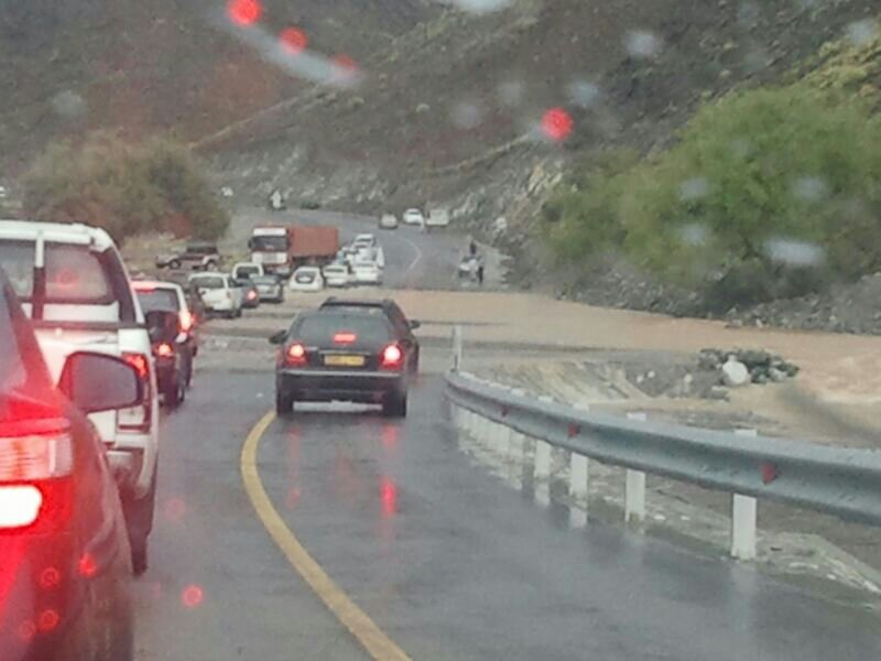 وادي الحوقين ( بني غافر ) يقطع حركة السير طريق السويق الرستاق