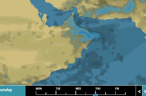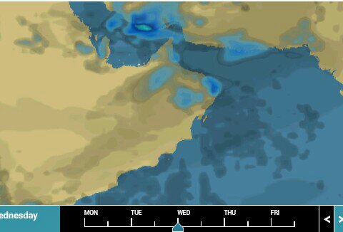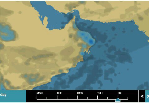# مساء الاثنين احتمالية بعض التكاثفات الماطره جهة الربع الخالي وقد تمتد لظاهره وجنوب الامارات بعض السحب وتزداد تدريجياً يوم الثلاثاء لتصبح مساء الثلاثاء امطار متفاوته وعامه باذن الله وتبدا ذروة الحاله من صباح الاربعاء وتعم تدريجياً ..