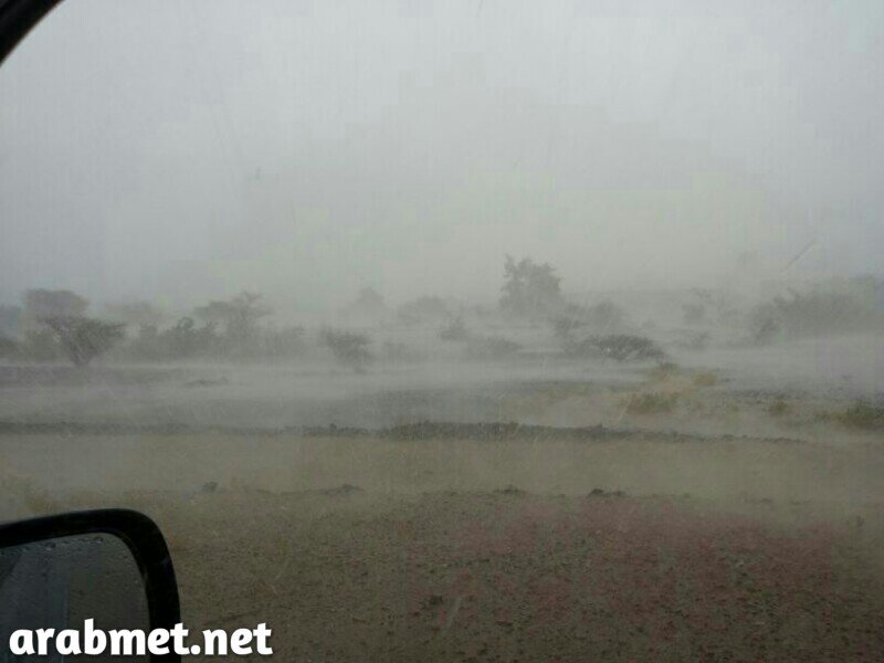 أمطار غزيره على الجبل الاخضر و الرعود تسبح بحمد الله و تساقط حبات البرد