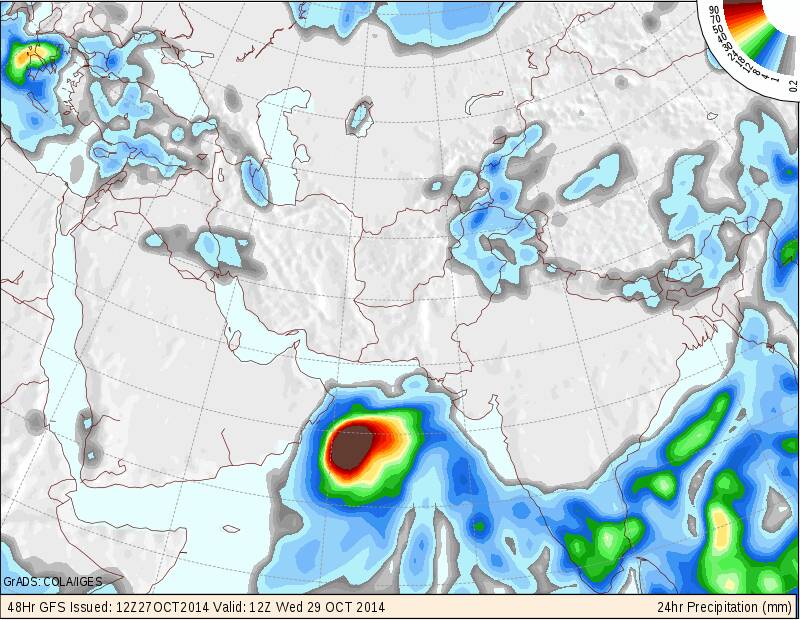 رد: متابعة الإعصار المداري (نيلوفر Nilofar ) في بحر العرب 22/10/2014