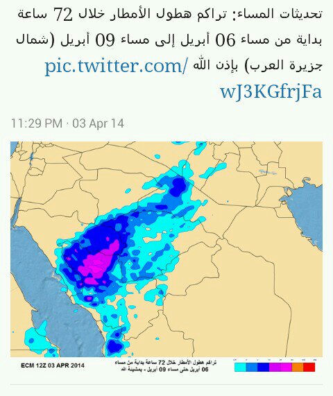 رد: متابعة : أحوال الطقس وحالة عدم الاستقرار في السلطنة ودول الخليج والوطن العربي خلال النصف الأول من إبريل 2014م