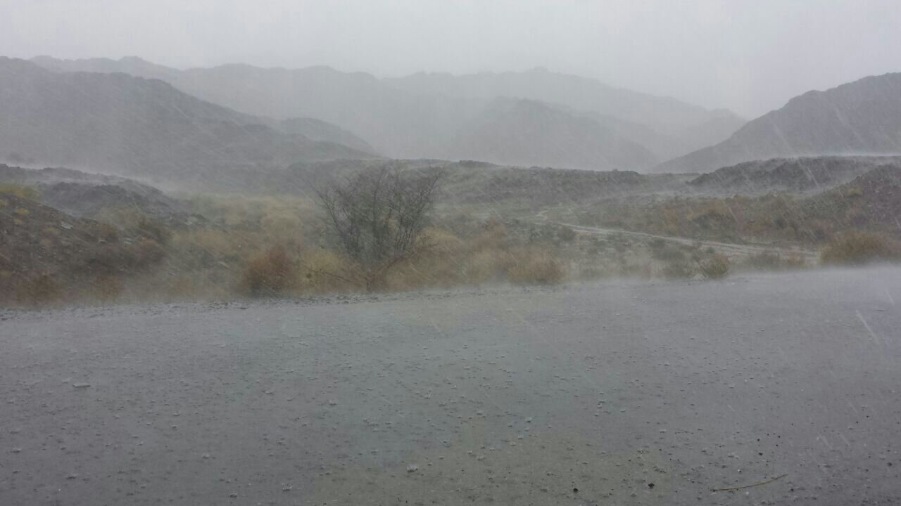 السديري ..امطار غزيرة في ينقل والجبال تختفي