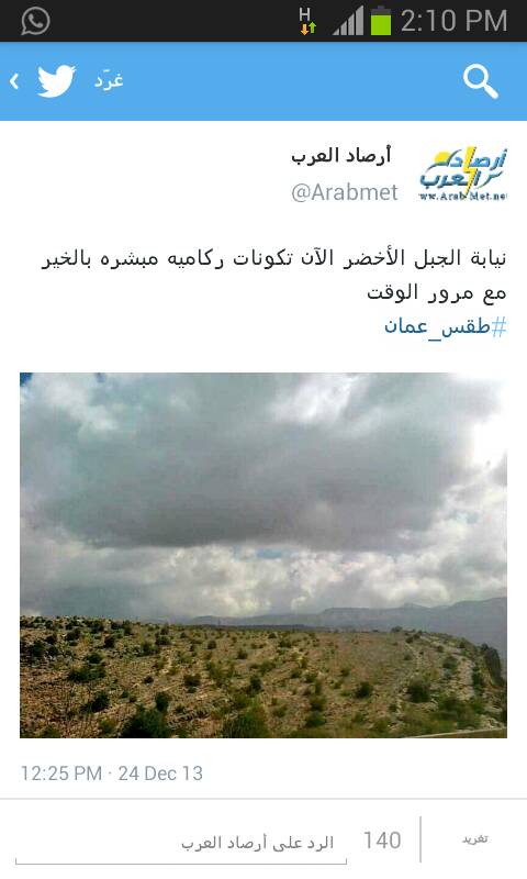 رد: متابعة أحوال الطقس على السلطنة خلال الفترة القادمة وإلى منتصف الشهر ديسمبر 2013م