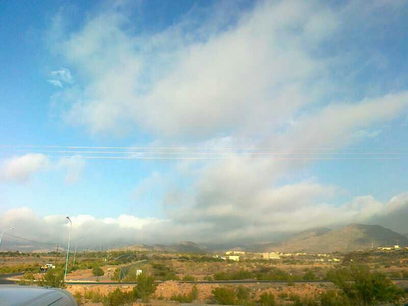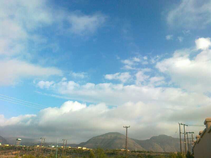 صباح الخير للجميع ""& الحمدالله هطلت أمطار خفيفه فجر اليوم على أرض الجبل الآخضر والآن السحب المتوسطه يغطي سماء بالكامل والظباب يغطي الجبال من جهة الجنوب والشرق " تهب رياح شماليه متوسطه بارده " الأجواء الأحساس بالبروده قليلا والجو جاف" 8:48 دقيقه