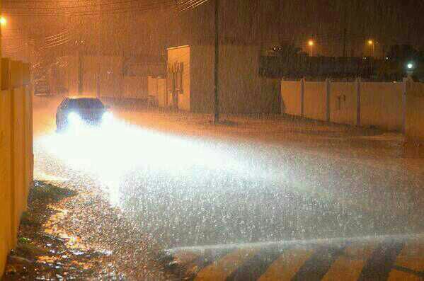 من ربع ساعه تقريبا معنا امطار بين المتوسطه والغزيره الحمد لله