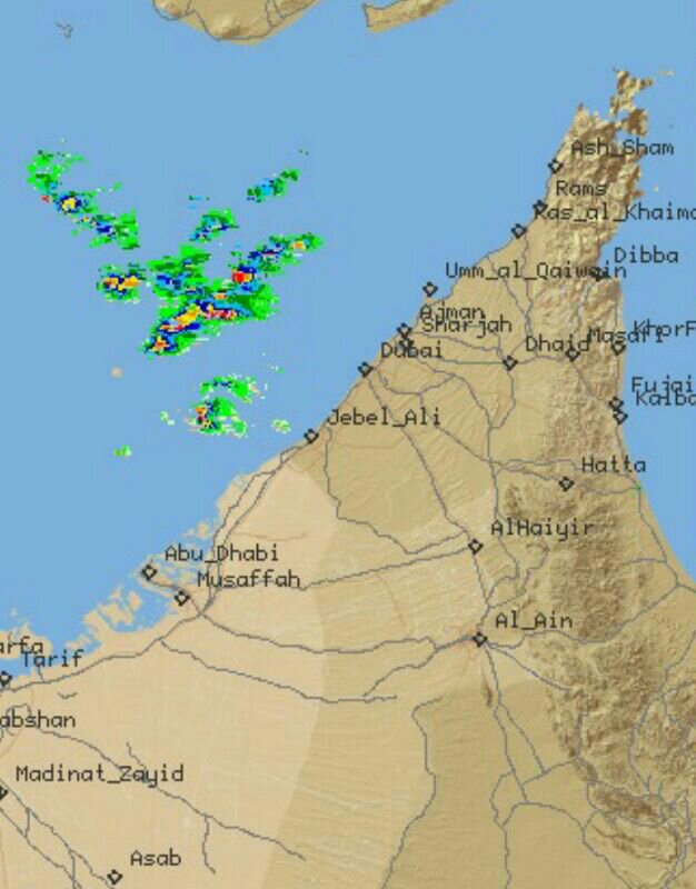 حسب الرادار خلايا ماطرة بالخليج العربي قبالة سواحل الإمارات