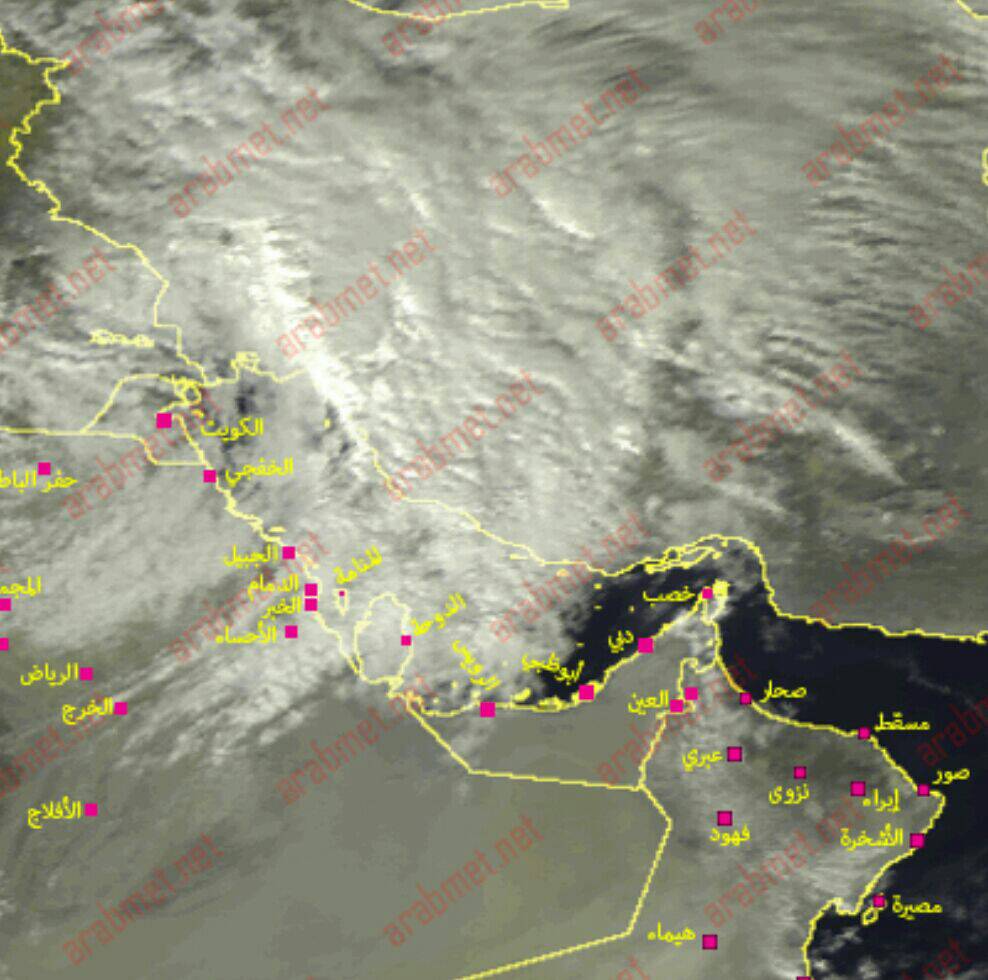 الاقمار توضح بداية دخول السحب على أجزاء من الأمارات ومسندم وهطول خفيف متفرق