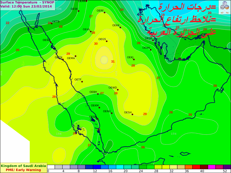 النشرة الموسمية من احدى المراكز العالمية المهتمة في المناخ للأشهر (فبراير- مارس -أبريل ) درجات حرارة فوق المعدل على جنوب ووسط السلطنة ، جنوب الأمارات ،سواحل ايران، باكستان..درجات حرارة طبيعية نحو المعدل على شمال عمان وبقية دول الخليج العربي..الله اعلم