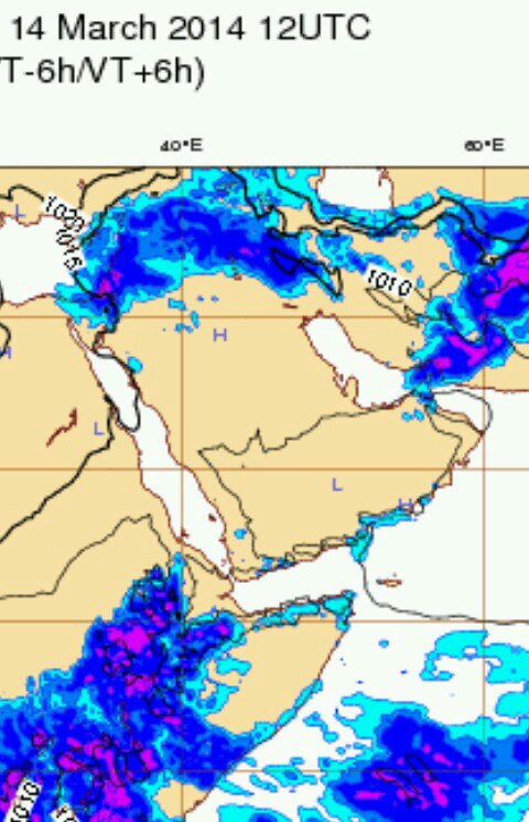 من المتوقع ان تتاثر البلاد بحالة عدم استقرار ابتداءً من يوم الثلاثاء الموافق 11/3/2014 الى يوم الجمعة الموافق 14/3/2014 حيث تبدأ حركة السحب المصحوبة بأمطار متفرقة تؤثر على البلاد، كما من المتوقع أن يزداد تأثير السحب الماطرة مع نهاية الأسبوع حيث تتحول بعضها إلى رعدية أحياناً.