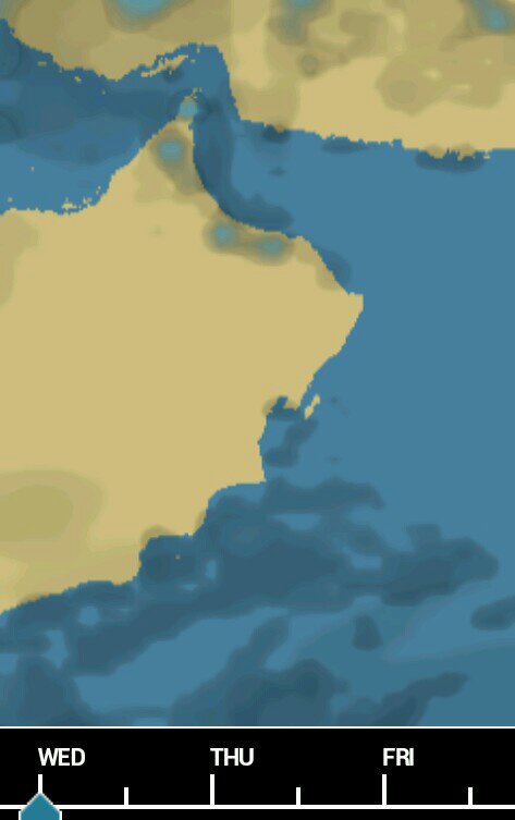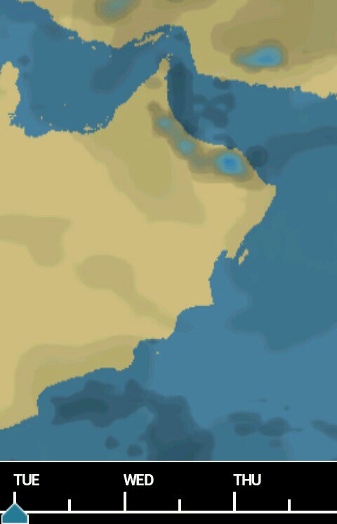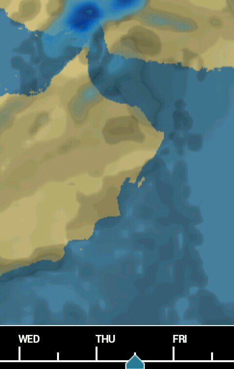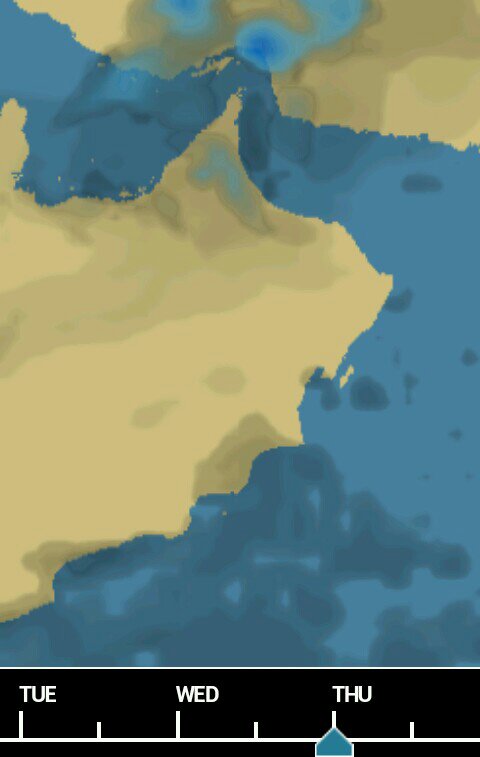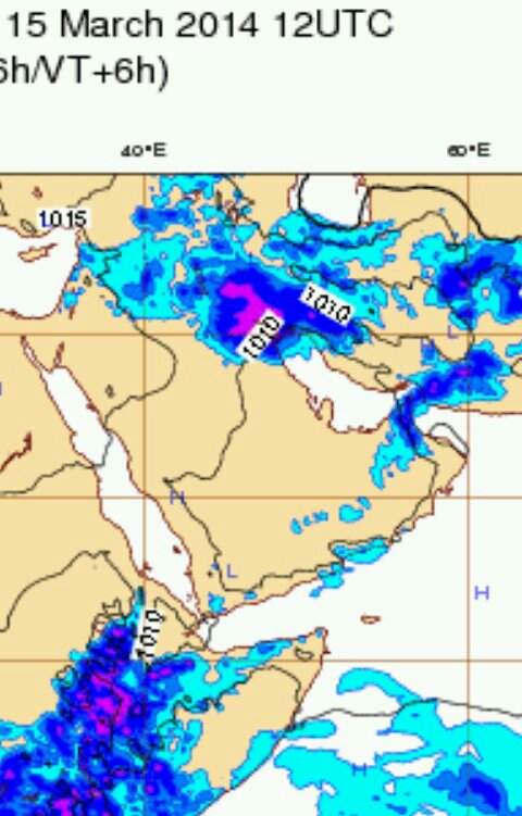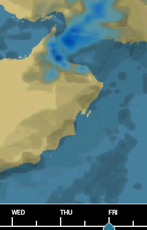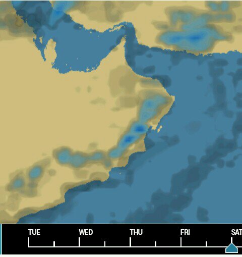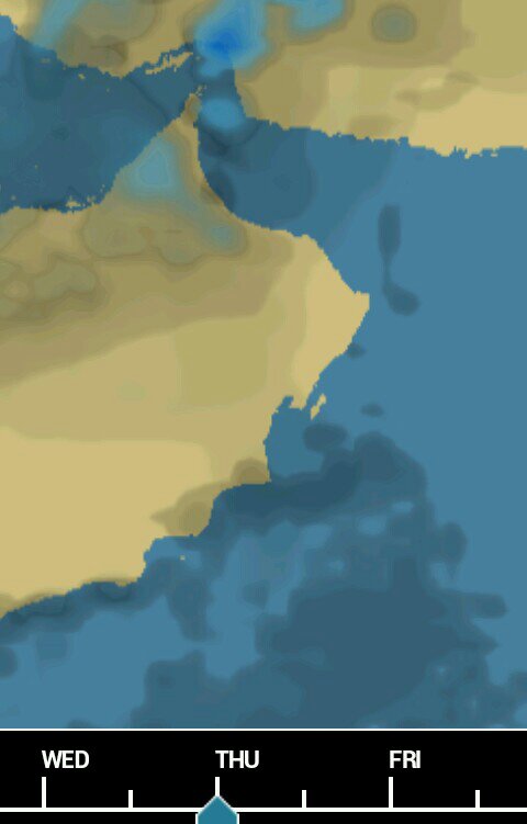 بإذن الله بداية تاثير الحاله من نهاية تاريخ 13 ساعات مساء الخميس.الذروة من تاريخ 14 .الحاله عامه وغزيره بإذن الله وخصوصا جبال الحجر والأودية متوقعه جارفه حتى الآن.مسندم ربما اول المستقبلين*