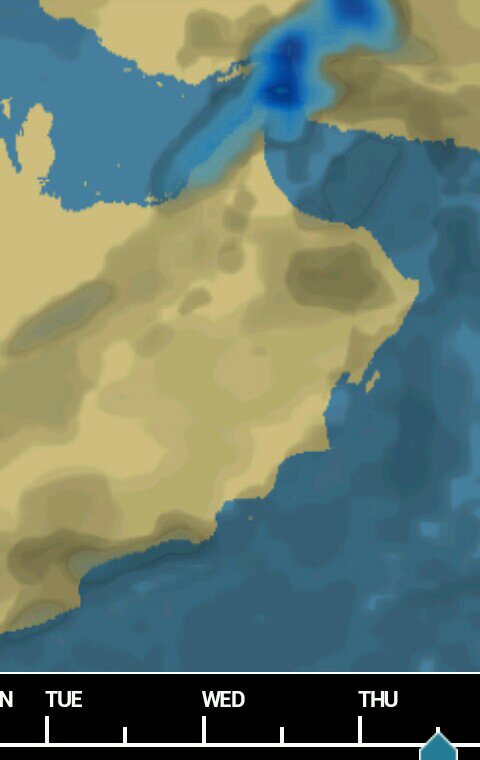 قد تتشكل ظهر الغد بعض الخلايا الركاميه بلحجر الغربي تكون ممطرة رعدية بشكل متفرق .. والله اعلم