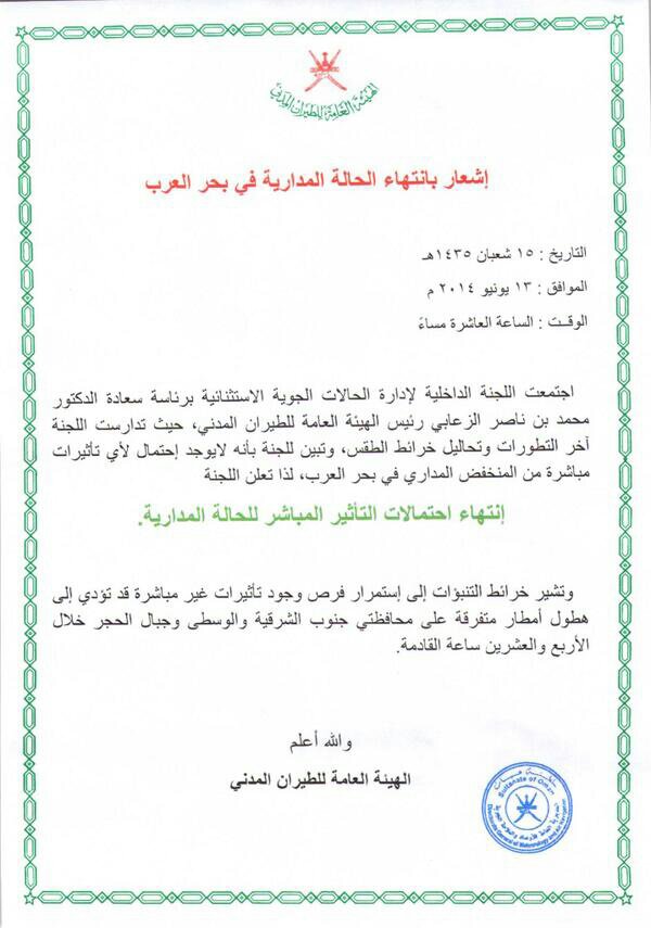 رد: المتابعة اليومية لطقس وأخر تطورات العاصفة المدارية نانوك nanauk ببحر العرب 2014م
