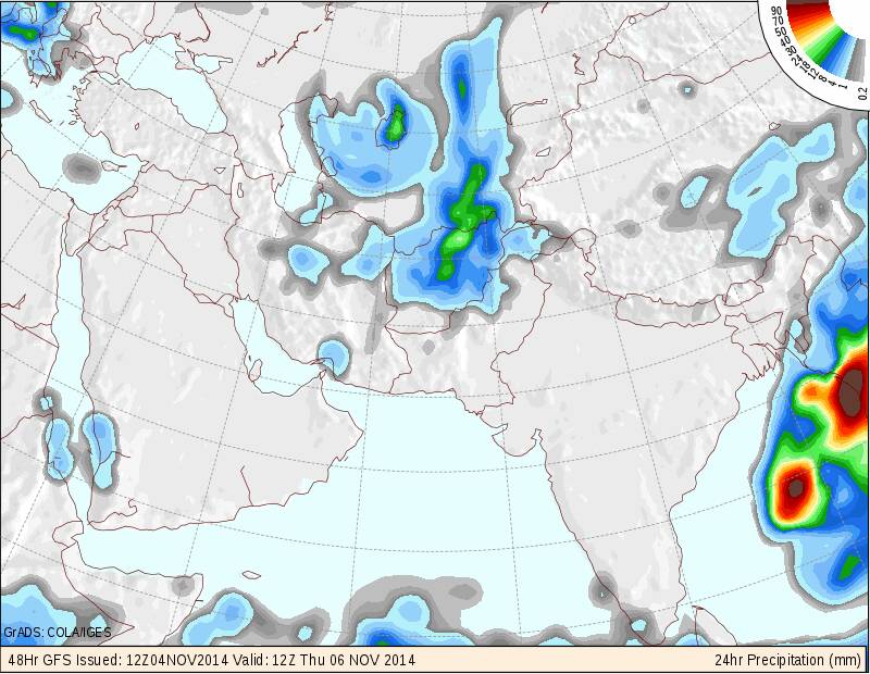 حسب ما تشير إليه توقعات محاكيات موديلات الطقس العالمية بشكل شبه متفق بأن يتأثر شمال إيران وشمال أفغانستان بموجة تبريد علوية تكون كفاتحة إمتداد ملامسة خط التجمد الموسمي الشتوي على مستوى 850مليبار حيث من المتوقع أن يفتتح الشتاء رسميا حيث سيكون الداعم لذلك تواجد منخفض جوي عميق أعلى الحدود الإيرانية الأفغانية متعمقا من الطبقات السطحية للطبقات المتوسطة وسيتواجد عدم إستقرار على مجمل الأراضي الإيرانية .