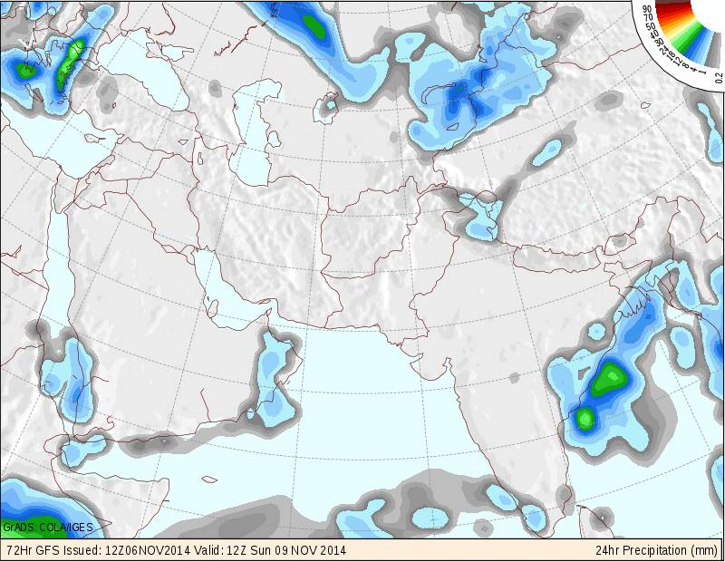توقعات الأمطار من الجي أف أس لستت أيام قادمة