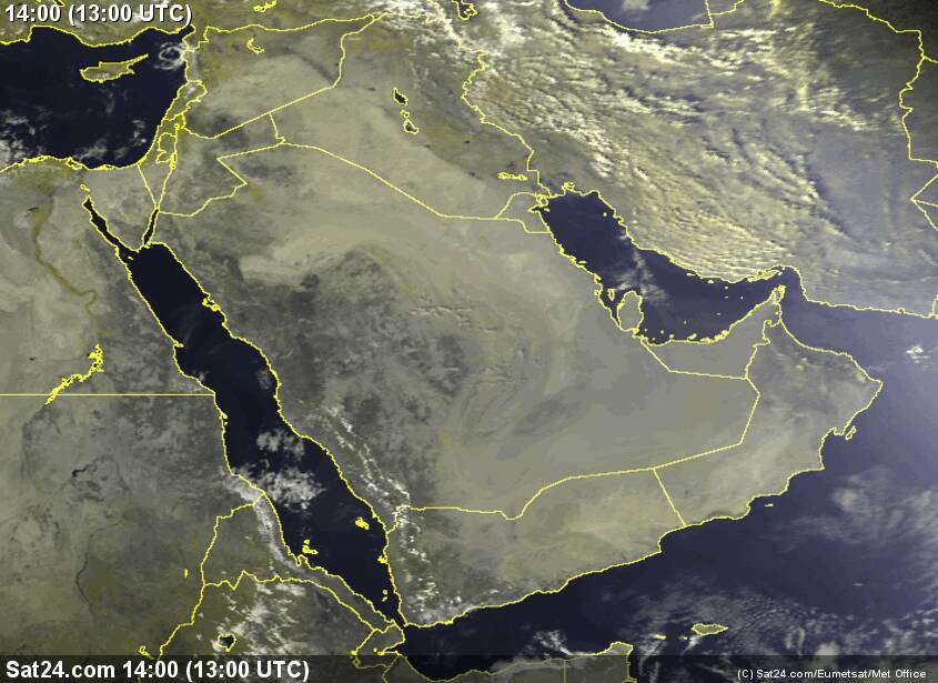 ضباب بأجزاء من #الإمارات الغربية وسحب عالية ومتوسطة تتخلها سحب منخفضة شرق #السعودية و #قطر #البحرين