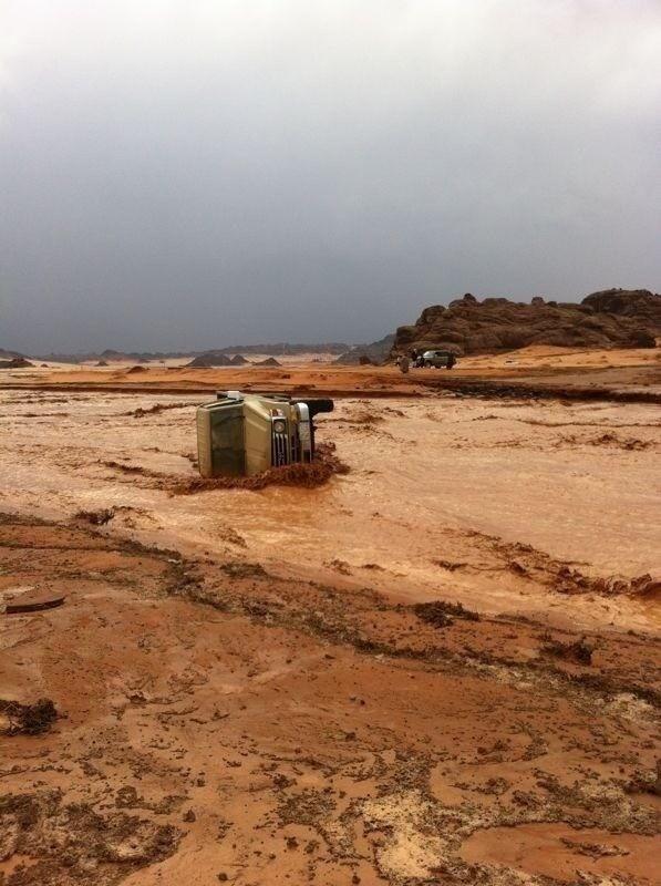 مدني الجوف: اخراج عائلة مكونة من ٦ افراد جازفت بقطع شعيب الحصاة بمركبتهم واحتجزت