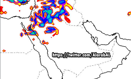من مساء اليوم حتى الثلاثاء راح تحدث فروقات حرارية عالية بين الطبقات البنائية ، هذا الامر يولد عواصف رعدية على الشام وشمال وغرب المملكة