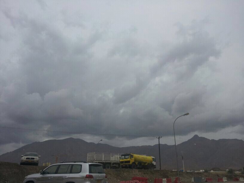 السحب المنخفضة تظهر بكميات كبيرة في صحراء عمان.وكما نعلم الحالة ستخرج جبرا من شمال عمان بسبب نمو منخفض سطحي بفعل الشمس في بؤرة رطبة جدا ..وبتالي كل ما في الصحراء لا بد ان يمر في طريق ضيق عبر شمال عمان ..وهو انسب مفهوم للفيضانات التي قد تسبب سيول خطرة اليوم عصر في شمال عمان والله اعلم