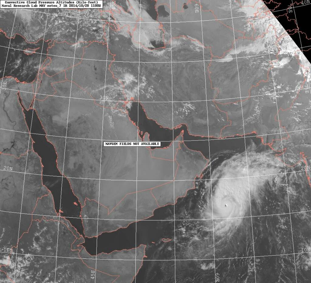 رد: متابعة الإعصار المداري (نيلوفر Nilofar ) في بحر العرب 22/10/2014