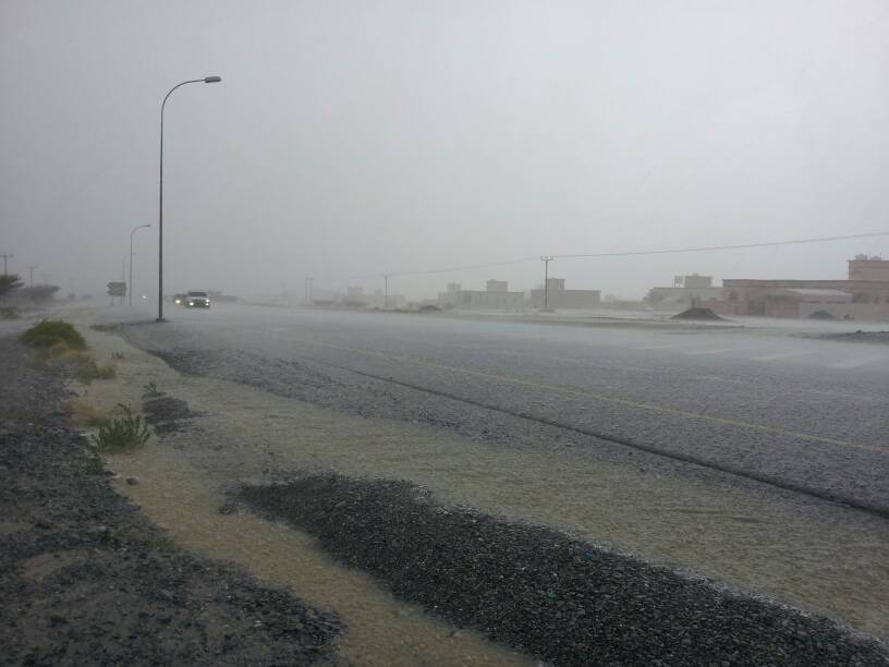 من الأمطار الغزيرة المصحوبة بالبرد بالرستاق