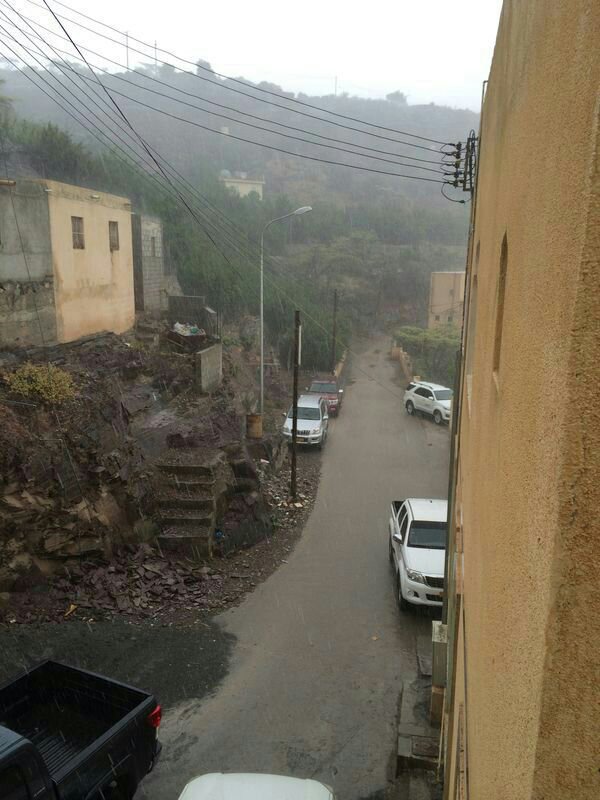امطار قويه جدا والجبال تختفي خلف الهمايل ع صهبان والجاهلي بالجزي