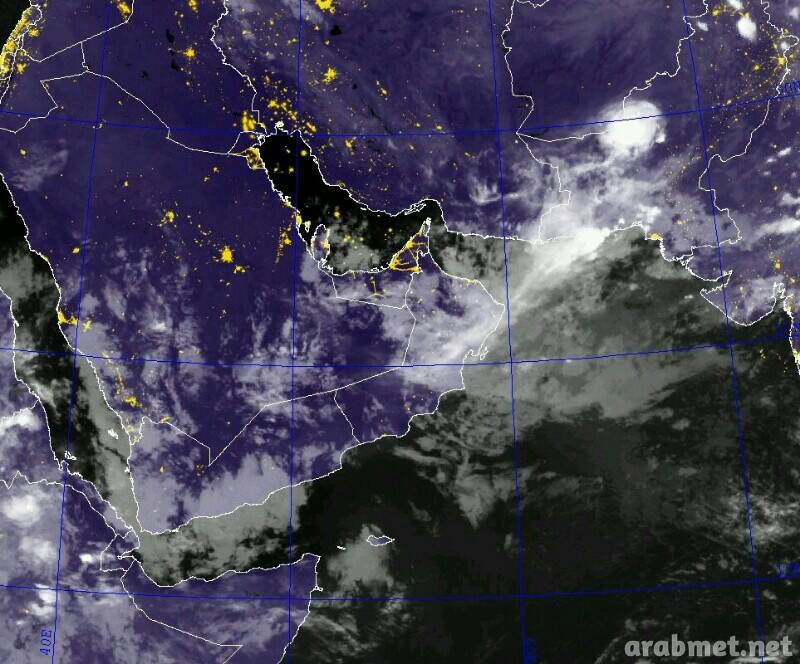 من ناحيه اخرا يستمر تدفق السحب العاليه و المتوسطه من بحر العرب ويقل خلال الايام القادمه والله اعلم