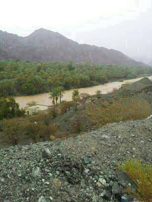 بركاء امطار خفيفه و بروق على جبال نخل