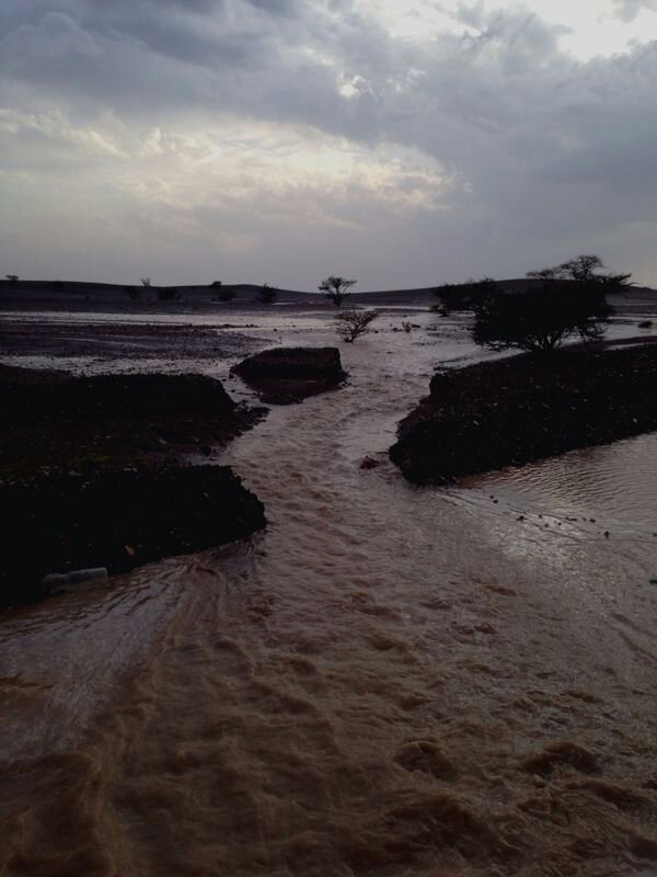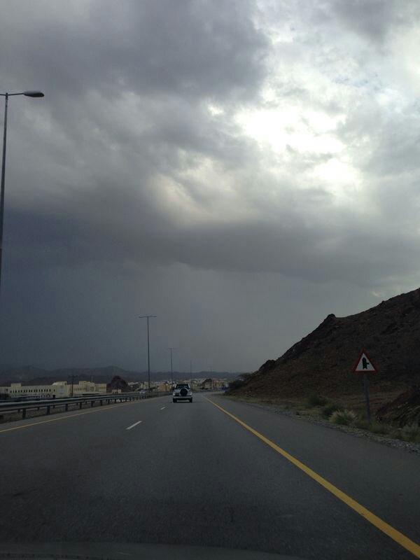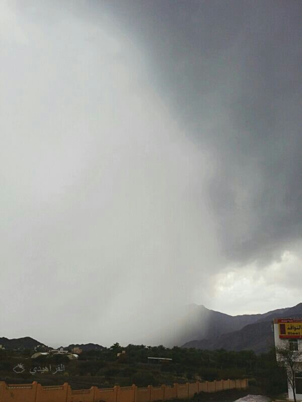 أمطار غزيرة على جبال فلج المراغة بسمائل
