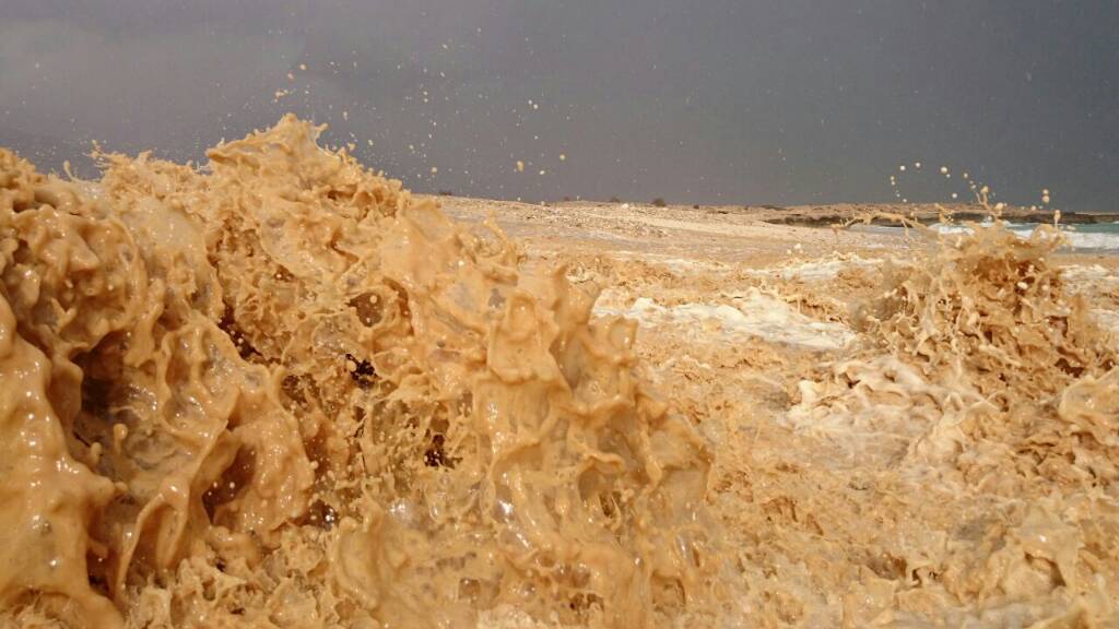 لحظة التقاء أحد اودية بمه بشرقية قريات بالبحر في منظر رائع