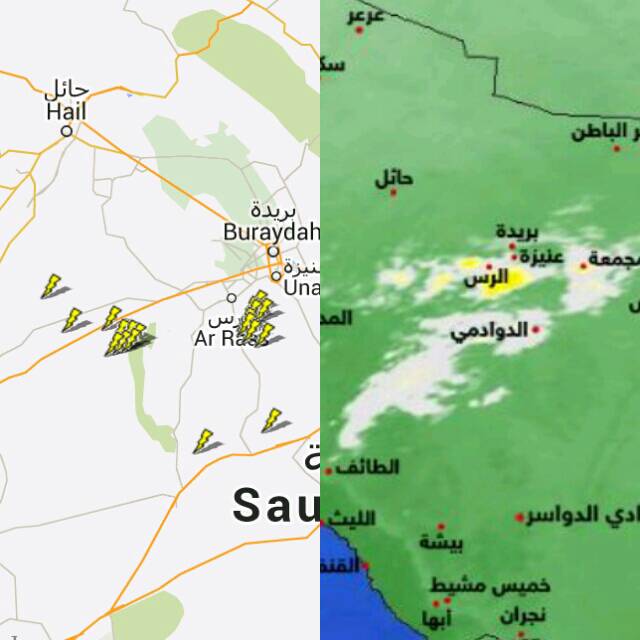 نشاط ركامي وأمطار رعدية حاليا بالقرب من #الرس وما حولها