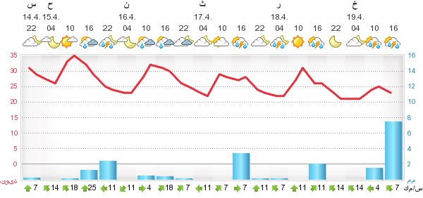 مواقع تعطي فرصة لبعض الزخات المطريه مساء اليوم