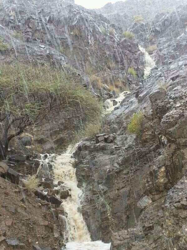 الأمطار لا تزال غزيرة جدا وجريان الشلالات والرعود مدوية