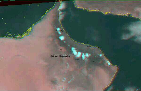 الأرصاد العمانية : إتساع نطاق التكونات على سلسلة جبال الحجر، فرص الامطار حاضرة قد تكون رعدية أحيانا