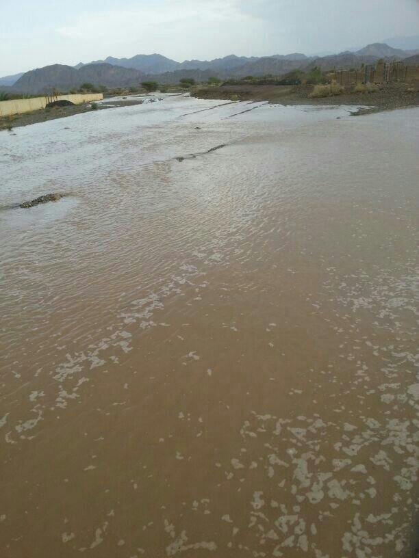 وادي السحتن يصل لمركز المدينة ويعبر الطريق المزدوج قرب منطقة الوشيل بجريان خفيف