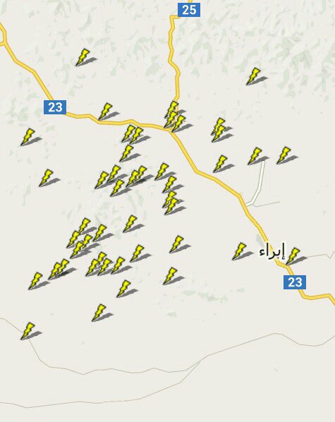 النشاط الرعدي لا يزال مستمر بكثافة وبمساحة واسعة شمال إبراء