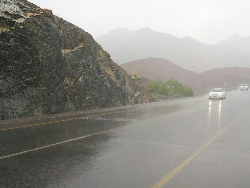 امطار متوسطه على طريق عندام قرب ملف وادي محرم