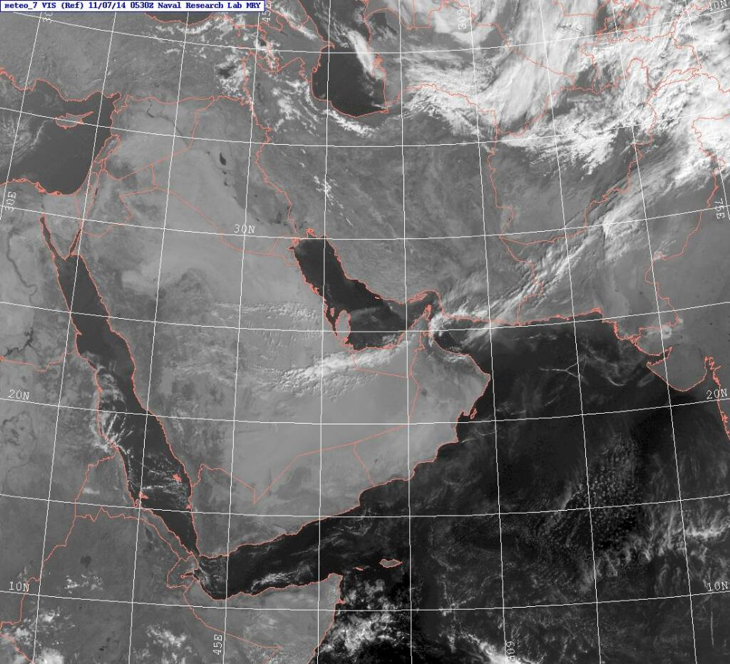 سحب عالية ومتوسطة تتخللها سحب منخفضة شمال #عمان وأجزاء من #الإمارات وشرق #السعودية #قطر