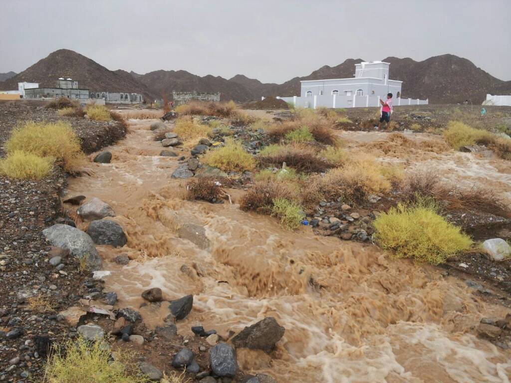 هطول أمطار بين المتوسطة والغزيرة على جبال وادي يقاء ووادي القبيل والغريز بوادي بني غافر بالرستاق