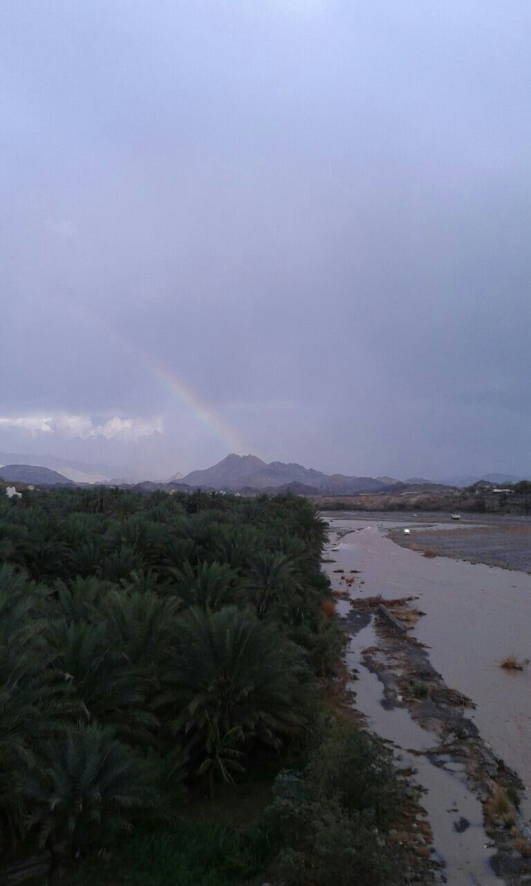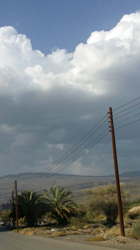 الهمائل تنهمر شمال شرق أرض الجبل الأخضر الأن وتبدوا واضحه فالصورة ⛅💧 بتجاه وادي مستل المطله على الجبال لقرية المناخ
